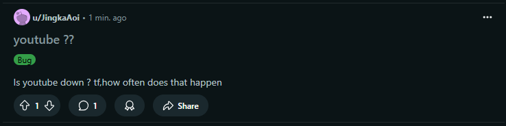Hoy (06/06/2025) como es costumbre mientras trabajo me gusta escuchar algún podcast o incluso música en YouTube, al entrar me salió una pantalla estática, pareciera que está cargando, pero tras un rato hizo absolutamente nada, me pasó lo mismo en una ventana de incognito, cabe aclarar que utilizo Google Chrome con Adblocker Plus, entonces asumí que podría ser una extensión la que tendría conflicto, obviamente desactive mi Adblock y todo volvió a funcionar, por lo que investigue no fue un caso aislado, muchos usuarios comenzaron a quejarse en Reddit.